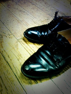 さて下は撮影中のネクタイと靴。そしてこっそり撮った、衣装片付け中の植木。